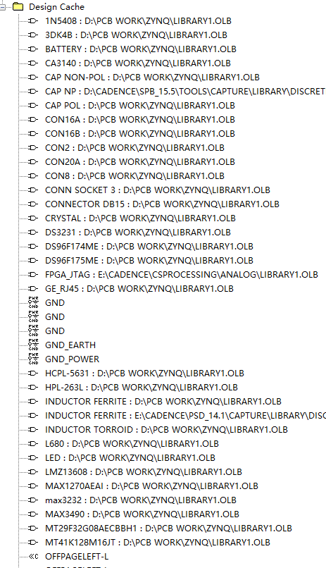 双击打开原理图中左边的DESIGN CACHE文件夹,里边显示了当前原理图中用到元件